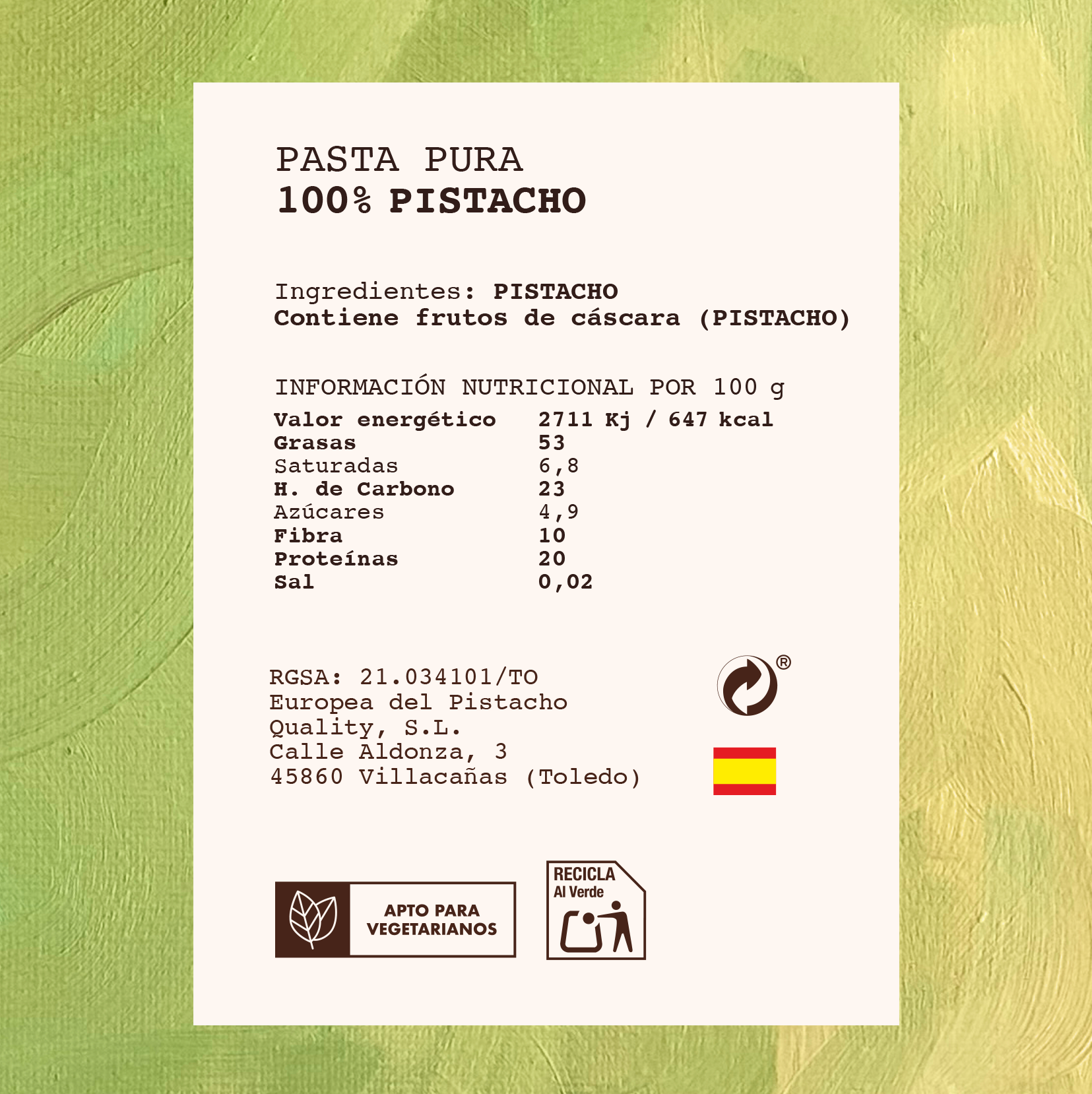 Ingredientes: Pasta pura de pistacho (pistacho machacado).